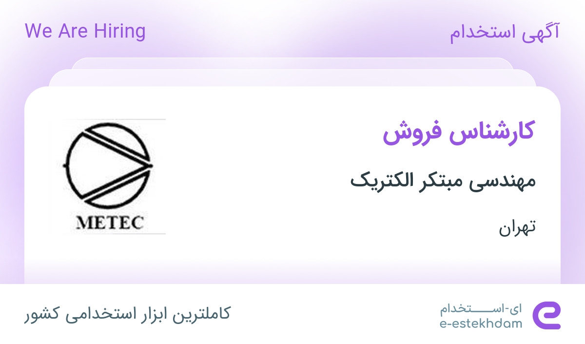 استخدام کارشناس فروش در مهندسی مبتکر الکتریک در محدوده دانشگاه شریف تهران