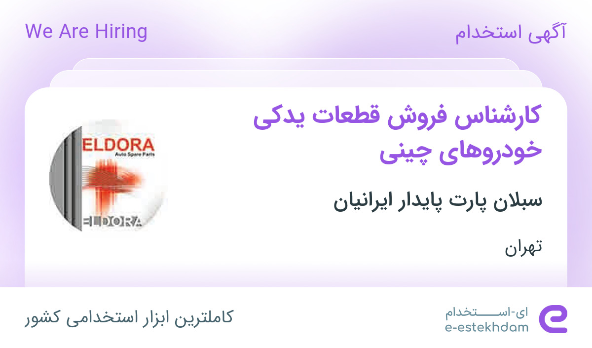 استخدام کارشناس فروش قطعات یدکی خودروهای چینی در تهران