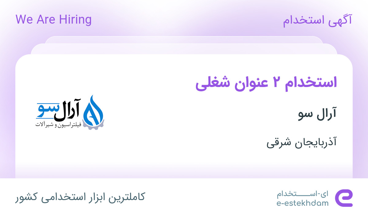 شرکت آرال سو جهت تکمیل کادر فروش خود در استان آذربایجان شرقی از افراد واجد شرایط زیر دعوت به همکاری مینماید.