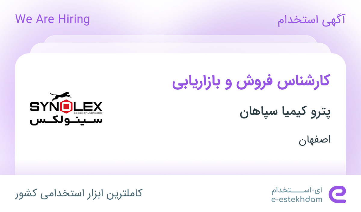 استخدام کارشناس فروش و بازاریابی در پترو کیمیا سپاهان در اصفهان