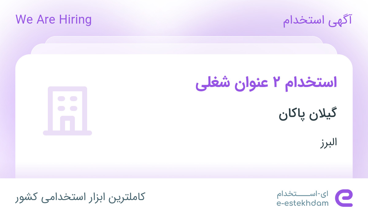 گیلان پاکان جهت تکمیل کادر خود در استان البرز از افراد واجد شرایط زیر دعوت به همکاری می نماید.