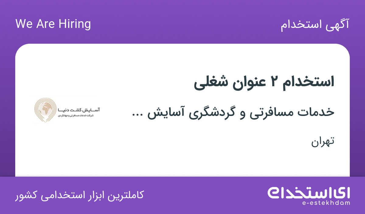 استخدام خدمات مسافرتی و گردشگری آسایش گشت دنیا