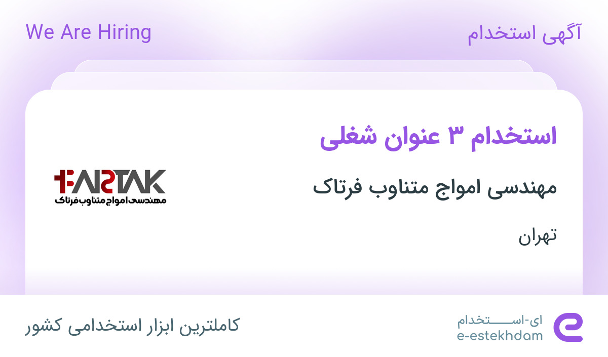 شرکت مهندسی امواج متناوب فرتاک فعال در زمینه تامین و ارائه برق اضطراری بدون وقفه (UPS) جهت تکمیل کادر خود در استان تهران از افراد واجد شرایط زیر دعوت به همکاری مینماید.