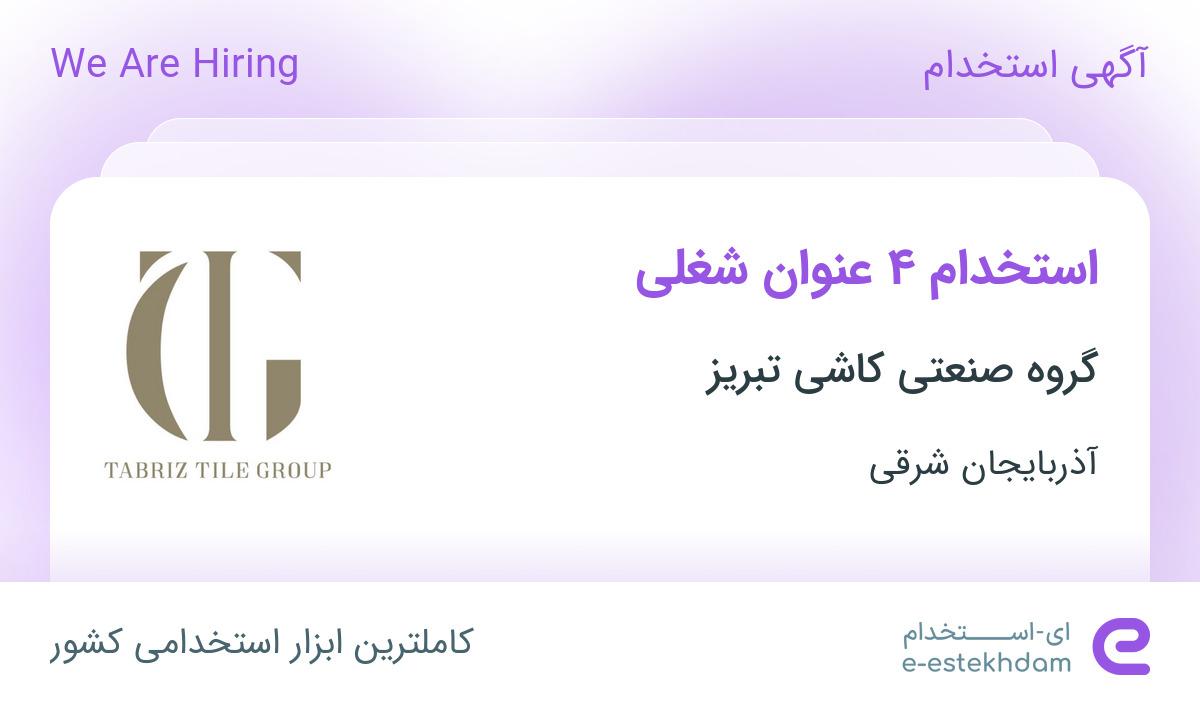 گروه صنعتی کاشی تبریز جهت تکمیل کادر خود در استان آذربایجان شرقی از افراد واجد شرایط زیر دعوت به همکاری می نماید.