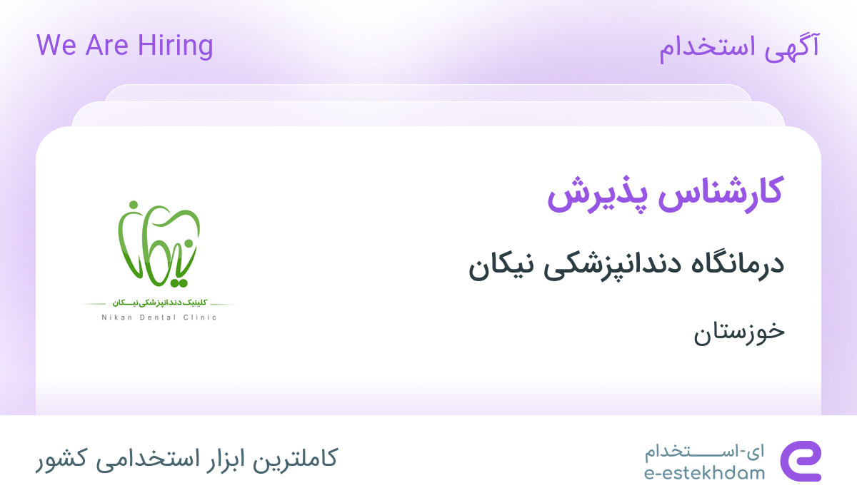 استخدام کارشناس پذیرش در درمانگاه دندانپزشکی نیکان در اهواز