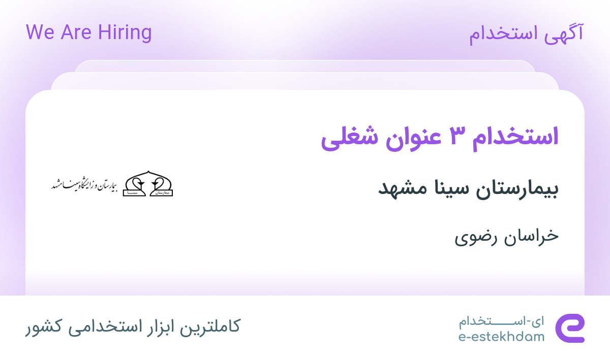 بیمارستان فوق تخصصی سینا مشهد جهت تکمیل کادر خود در استان خراسان رضوی از افراد واجد شرایط زیر دعوت به همکاری مینماید.