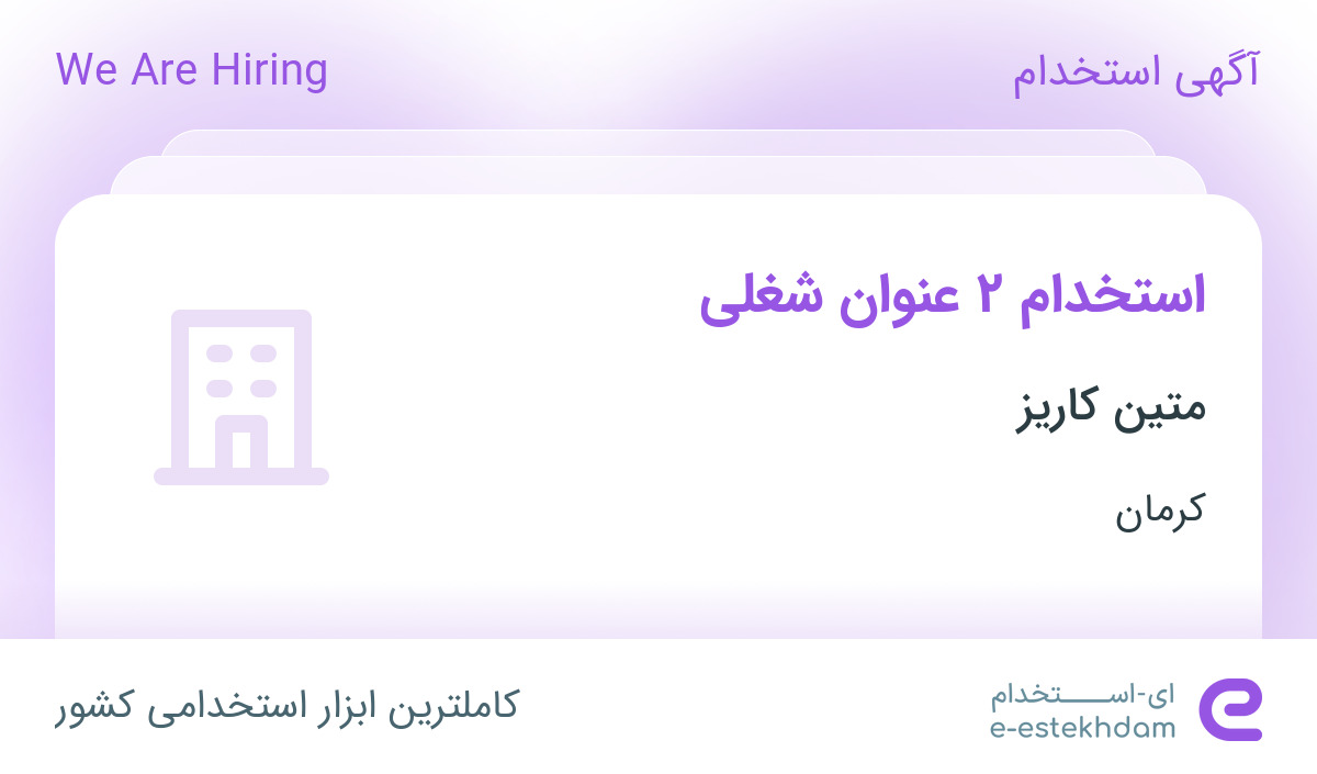 متین کاریز جهت تکمیل کادر خود در استان کرمان از افراد واجد شرایط زیر دعوت به همکاری می نماید.