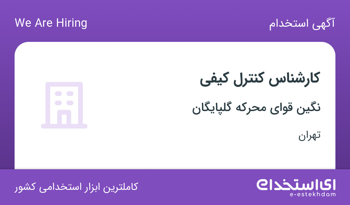 #استخدام #کارشناس #کنترل #کیفی #در #نگین #قوای #محرکه #گلپایگان #در #کوی #فردوس #تهران
