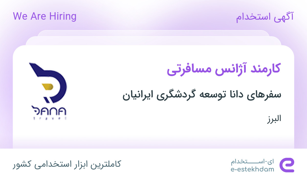#استخدام #کارمند #آژانس #مسافرتی #در #سفرهای #دانا #توسعه #گردشگری #ایرانیان #در #البرز