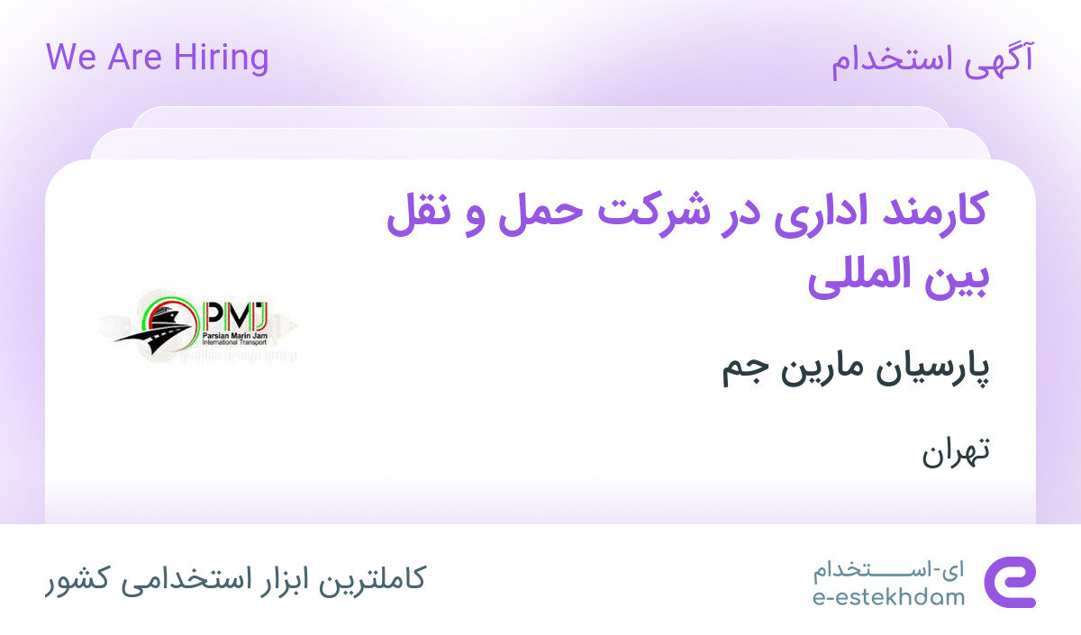 استخدام پارسیان مارین جمشرکت حمل و نقل بین المللی پارسیان مارین جم جهت تکمیل کادر خود در استان تهران از افراد واجد شرایط زیر دعوت به همکاری مینماید.