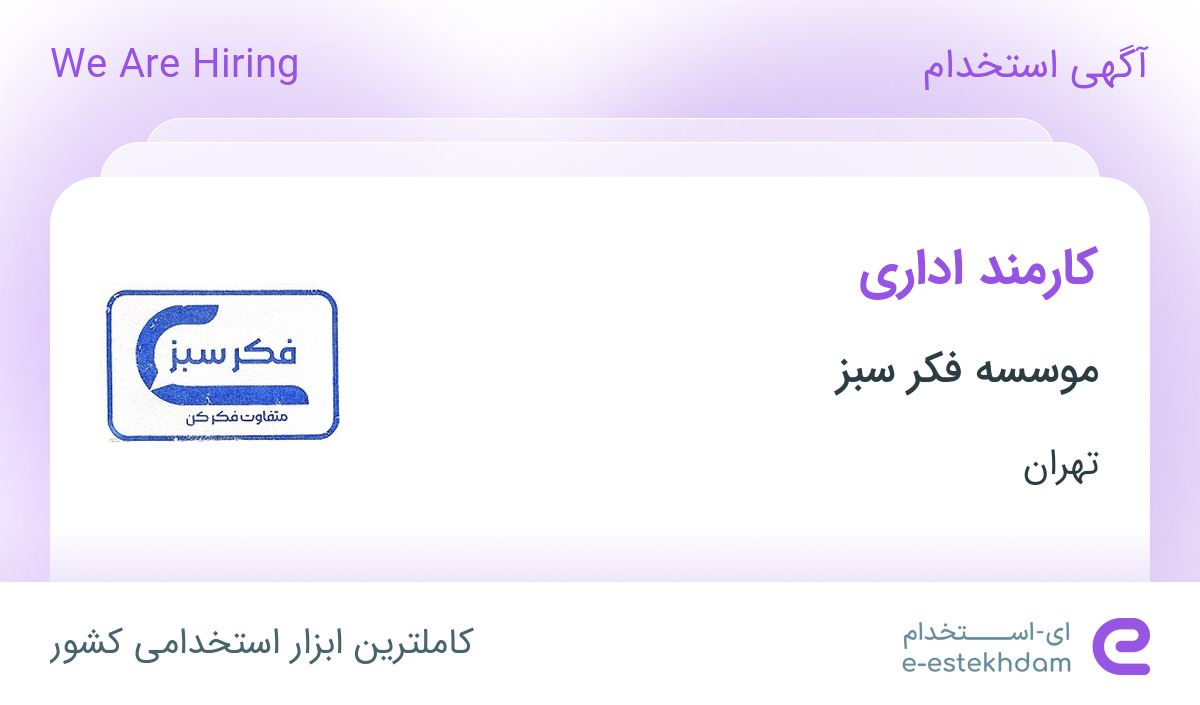 #استخدام #کارمند #اداری #در #موسسه #فکر #سبز #در #محدوده #ظفر #تهران