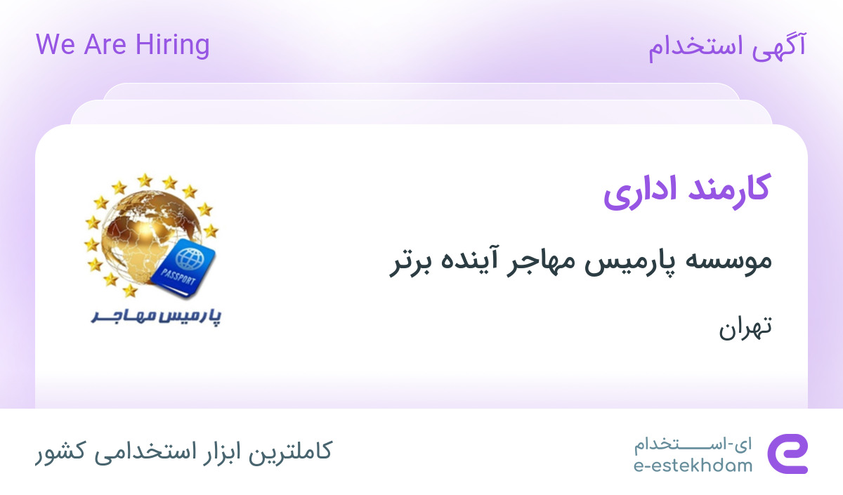 #استخدام #کارمند #اداری #در #موسسه #پارمیس #مهاجر #آینده #برتر #در #تهران