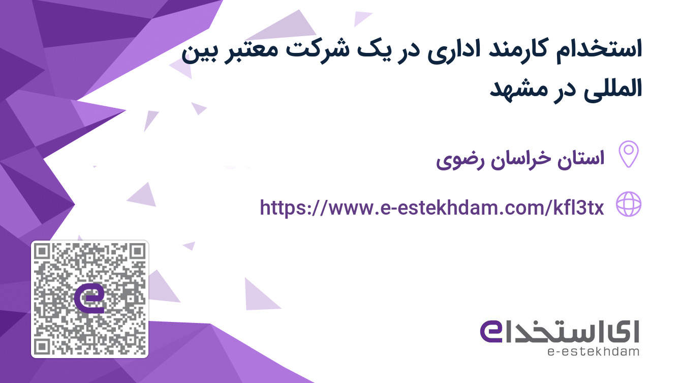 یک شرکت معتبر بین المللی جهت تکمیل کادر اداری خود در استان خراسان رضوی، شهر مشهد از افراد واجد شرایط زیر دعوت به همکاری مینماید.