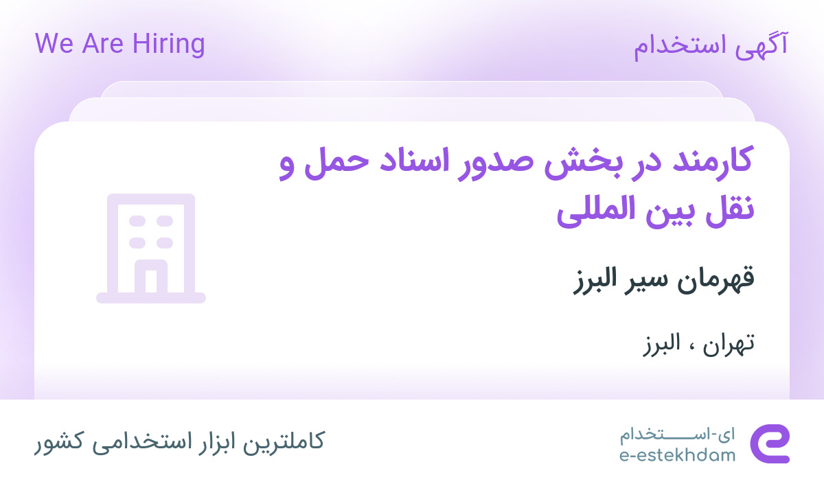 #استخدام #کارمند #در #بخش #صدور #اسناد #حمل #نقل #بین #المللی #در #تهران #البرز