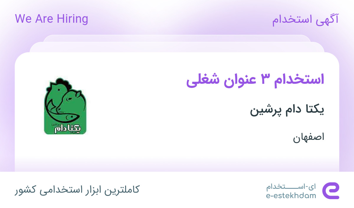 یکتا دام پرشین جهت تکمیل کادر خود در استان اصفهان از افراد واجد شرایط زیر دعوت به همکاری می نماید.