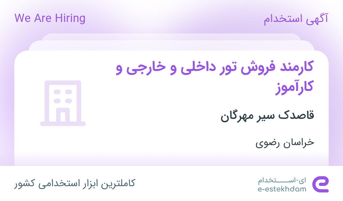 استخدام کارمند فروش تور داخلی و خارجی و کارآموز در قاصدک سیر مهرگان در مشهد