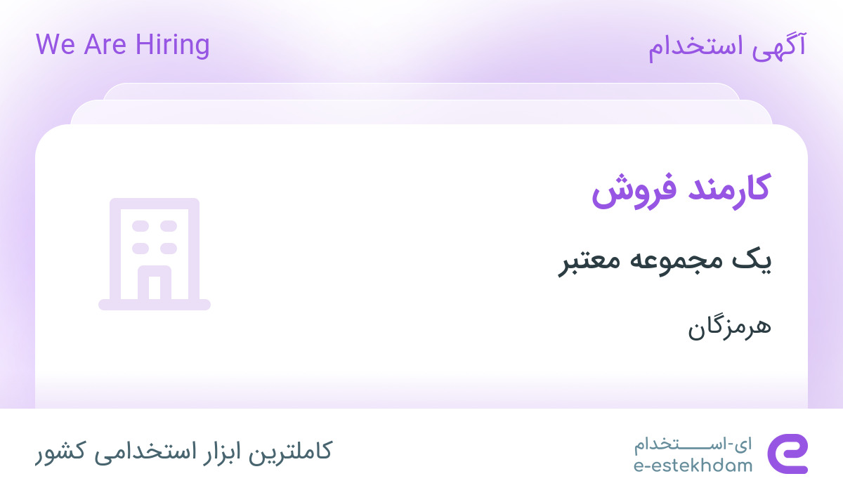 بزرگترین شرکت تجهیزات لوازم داخلی ساختمان ، در بندرعباس جهت توسعه شوروم جدید خود، برای بخش فروش واقع در« بلوار سوم خرداد و حومه» به افراد با شرایط ذیل نیاز دارد:
