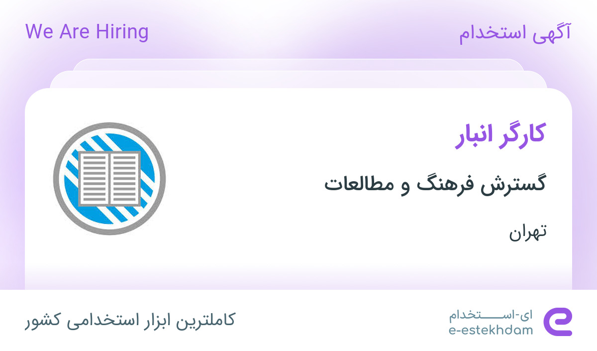 استخدام کارگر انبار در گسترش فرهنگ و مطالعات در محدوده حکیمیه تهران