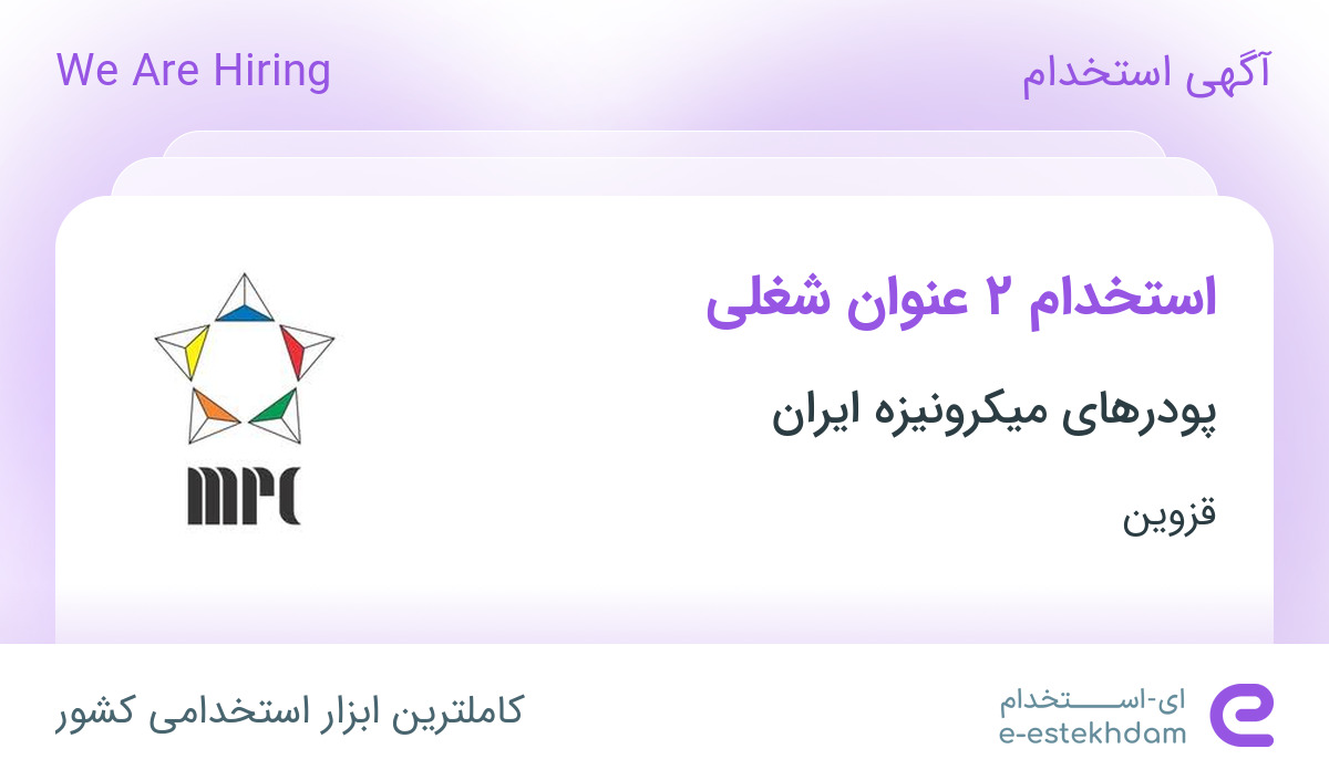 شرکت پودرهای میکرونیزه ایران جهت تکمیل کادر خود در استان قزوین از افراد واجد شرایط زیر دعوت به همکاری مینماید.
