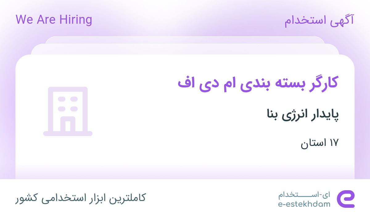 #استخدام #کارگر #بسته #بندی #ام #دی #اف #در #پایدار #انرژی #بنا #در #۱۷ #استان