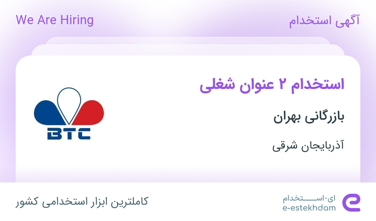 بازرگانی بهران جهت تکمیل کادر خود در استان آذربایجان شرقی از افراد واجد شرایط زیر دعوت به همکاری می نماید.