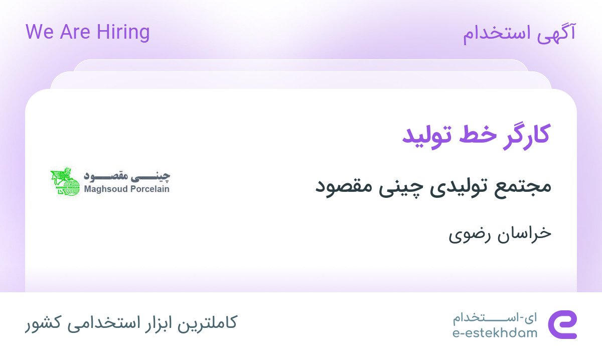 استخدام کارگر خط تولید در مجتمع تولیدی چینی مقصود در خراسان رضوی