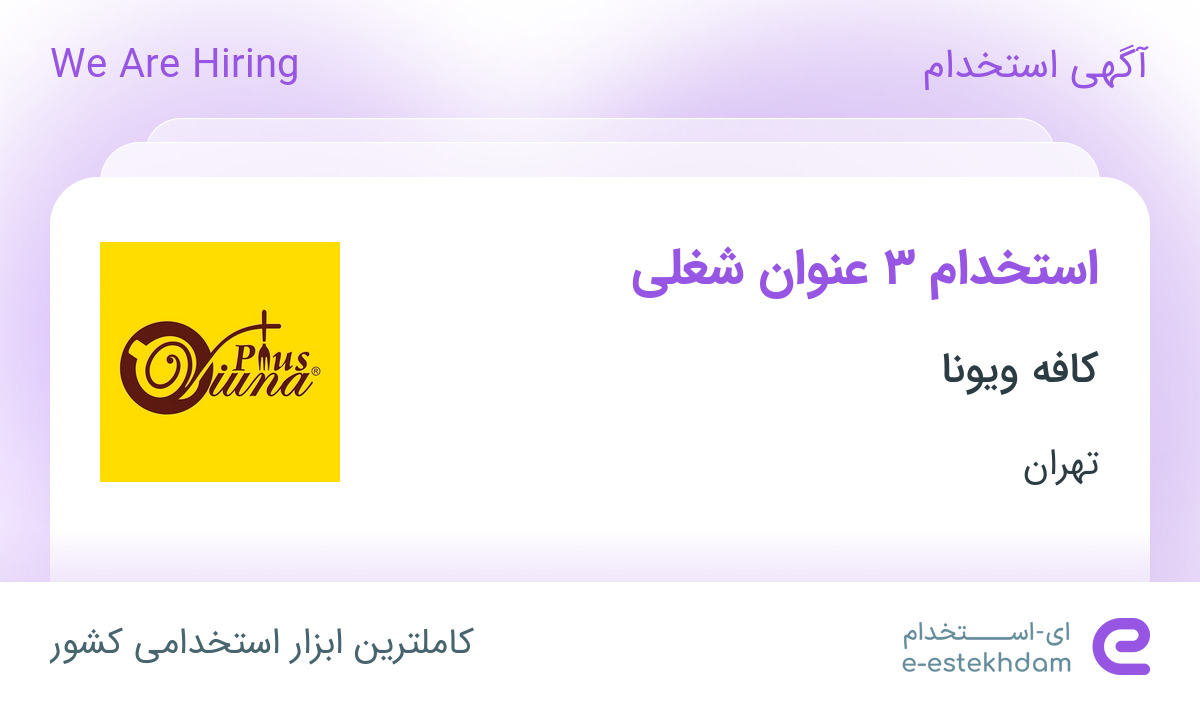 کافه ویونا جهت تکمیل کادر خود در استان تهران از افراد واجد شرایط زیر دعوت به همکاری می نماید.