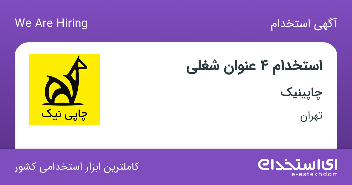 چاپینیک جهت تکمیل کادر خود در استان تهران از افراد واجد شرایط زیر دعوت به همکاری می نماید.