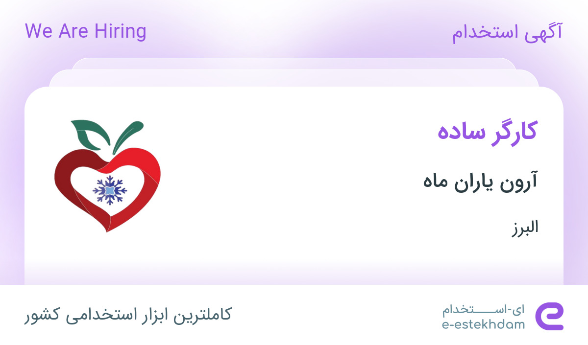 استخدام کارگر ساده در آرون یاران ماه در شهر کوهسار البرز
