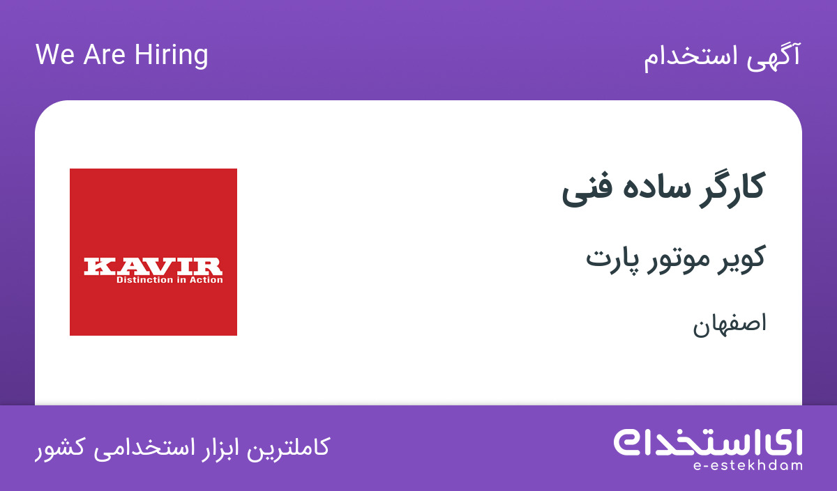 استخدام کارگر ساده فنی در کویر موتور پارت در شهرضا