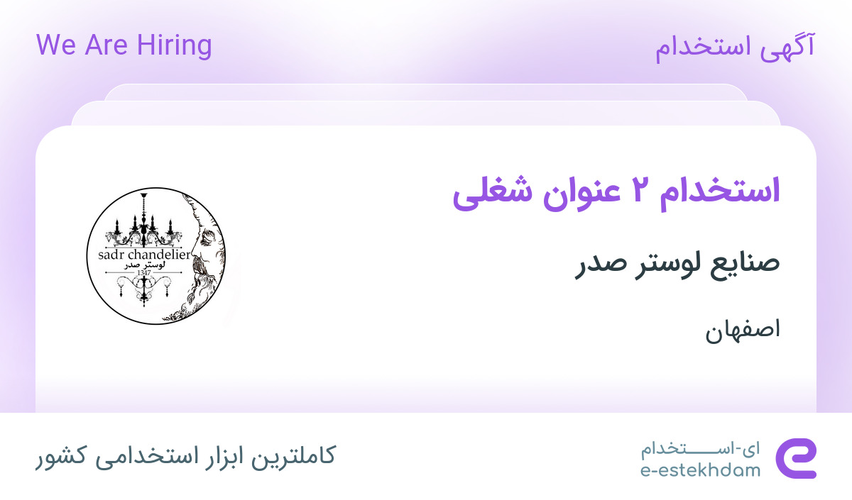 صنایع لوستر صدر جهت تکمیل کادر خود در استان اصفهان از افراد واجد شرایط زیر دعوت به همکاری می نماید.