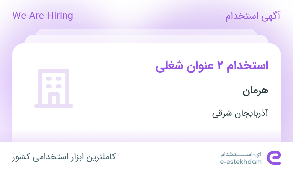 شرکت هرمان جهت تکمیل کادر خود در استان آذربایجان شرقی از افراد واجد شرایط زیر دعوت به همکاری مینماید.
