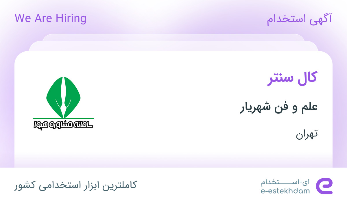 #استخدام #کال #سنتر #در #علم #فن #شهریار #در #محدوده #دریان #نو #تهران