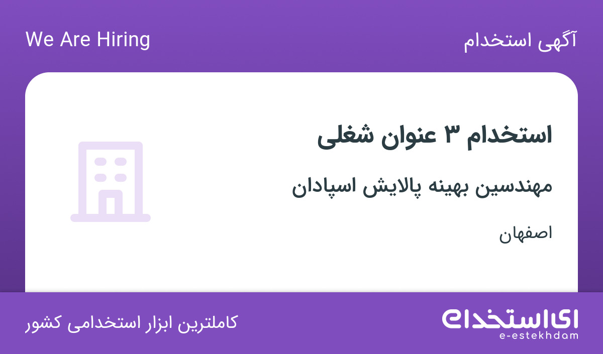 شرکت مهندسین بهینه پالایش اسپادان واقع خیابان شیخ بهایی جهت تکمیل کادر خود در استان اصفهان از افراد واجد شرایط زیر دعوت به همکاری مینماید.