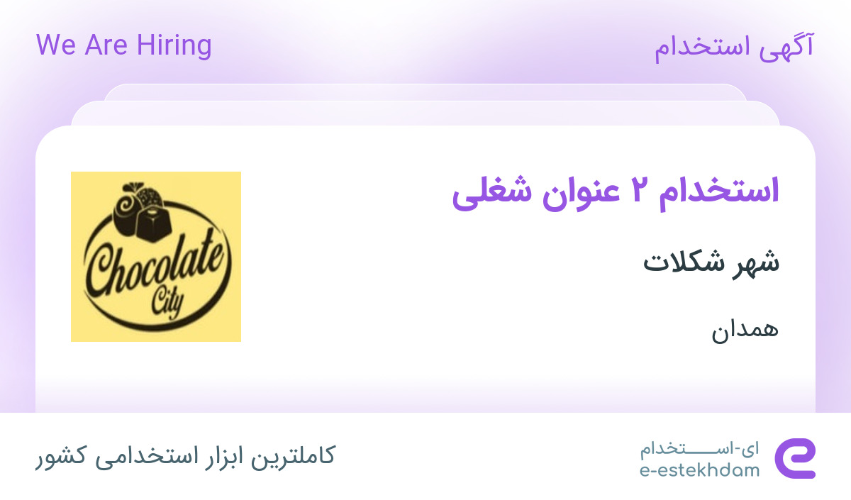 شهر شکلات جهت تکمیل کادر خود در استان همدان از افراد واجد شرایط زیر دعوت به همکاری می نماید.