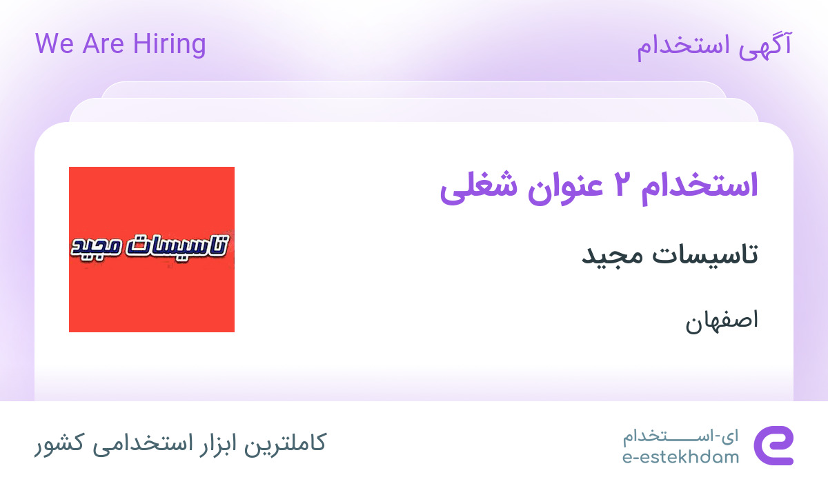 تاسیسات مجید جهت تکمیل کادر خود در استان اصفهان از افراد واجد شرایط زیر دعوت به همکاری می نماید.