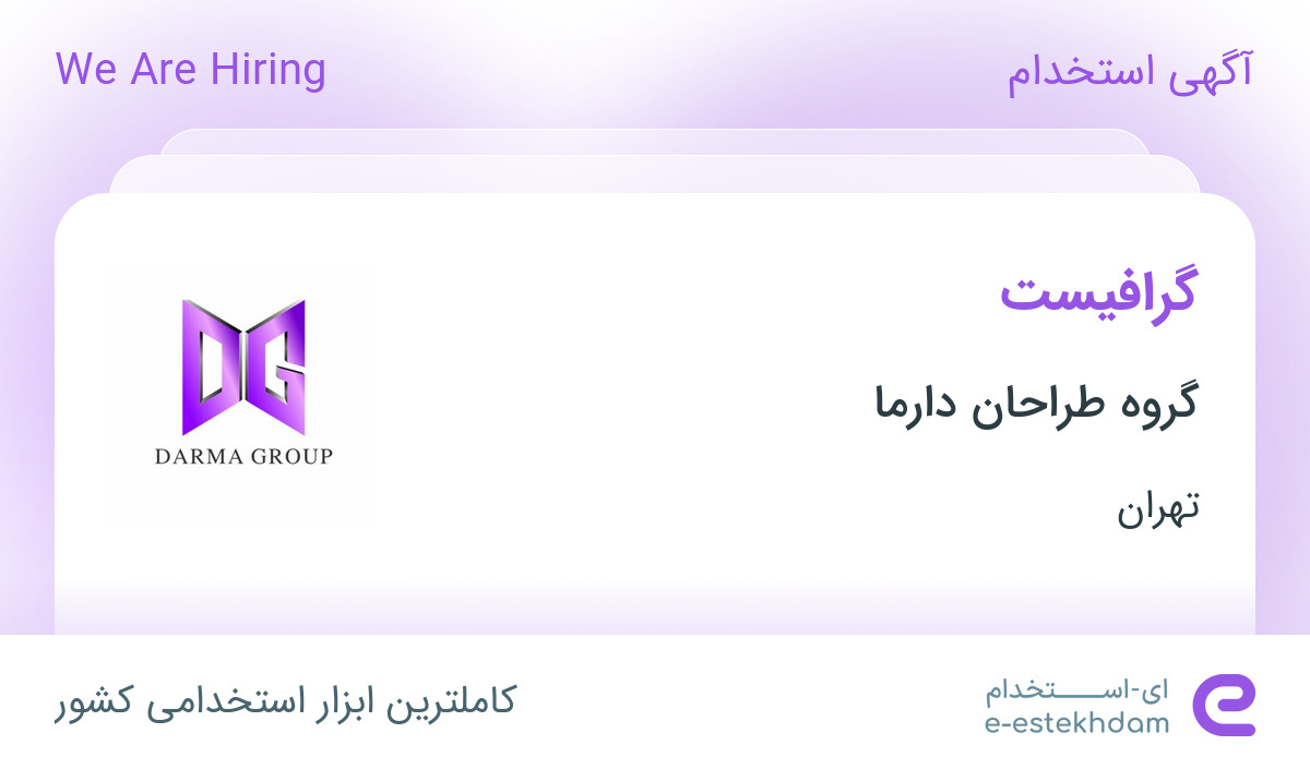 استخدام گروه طراحان دارماگروه طراحان دارما در تهران (منطقه ۷، سهروردی – باغ صبا) جهت تکمیل کادر خود از متقاضیان ساکن استان تهران استخدام مینماید
