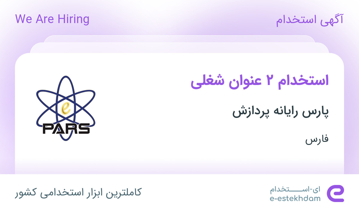 استخدام ۲ عنوان شغلی در پارس رایانه پردازش در فارس