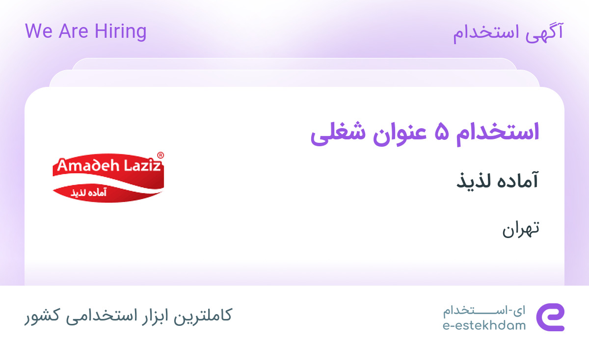 استخدام ۵ عنوان شغلی در آماده لذیذ در تهران