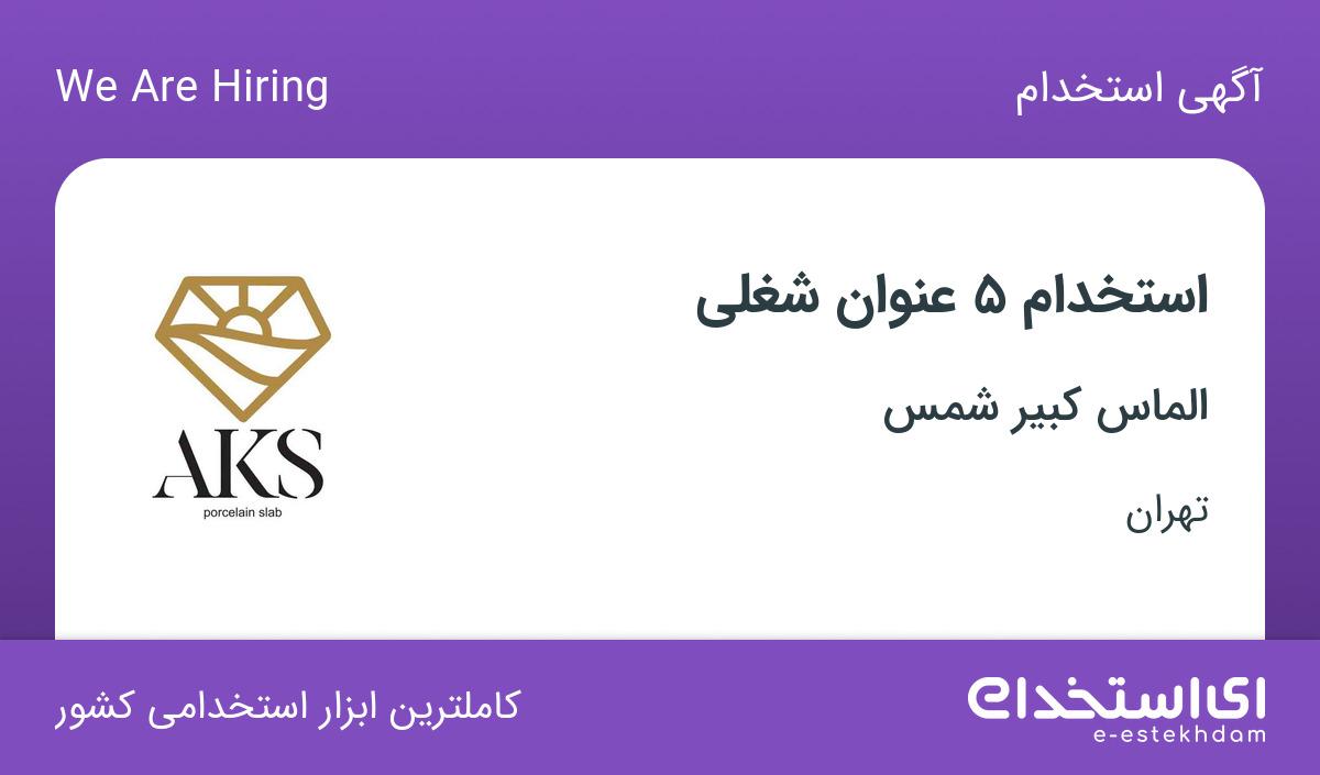 استخدام ۵ عنوان شغلی در الماس کبیر شمس در تهران