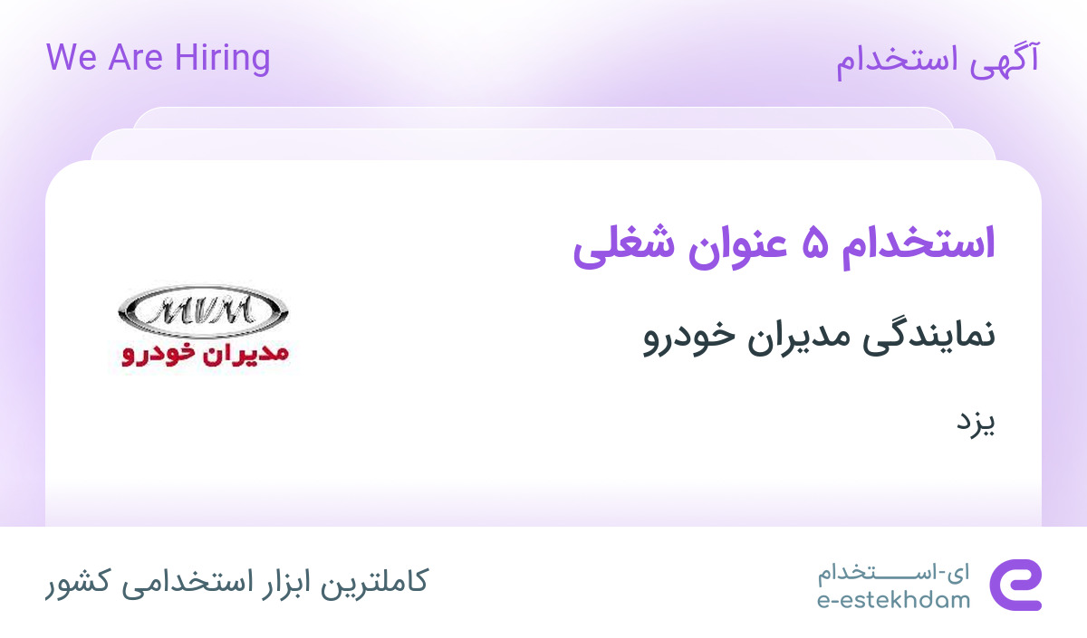 استخدام ۵ عنوان شغلی در نمایندگی مدیران خودرو در یزد
