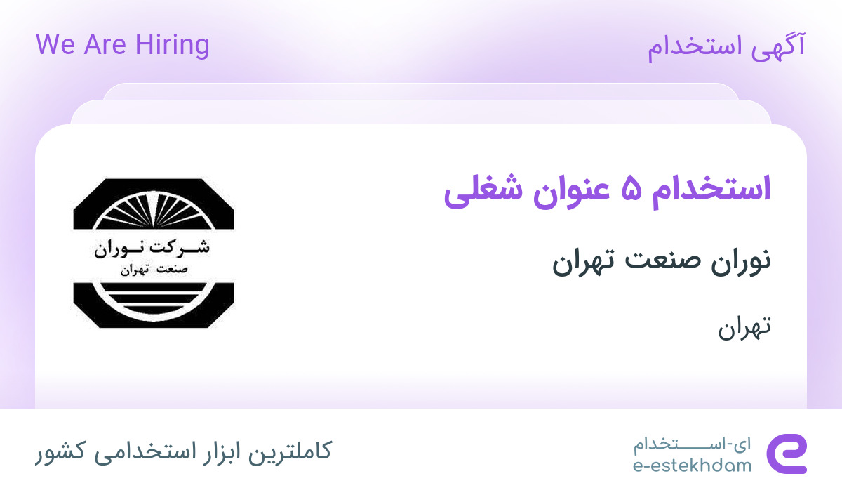 استخدام ۵ عنوان شغلی در نوران صنعت تهران در تهران