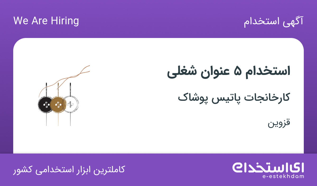 #استخدام #عنوان #شغلی #در #کارخانجات #پاتیس #پوشاک #در #قزوین
