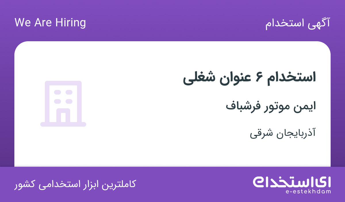 استخدام ۶ عنوان شغلی در ایمن موتور فرشباف در آذربایجان شرقی