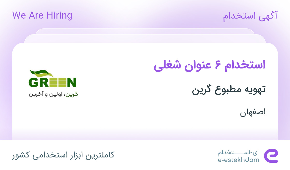 استخدام ۶ عنوان شغلی در تهویه مطبوع گرین در اصفهان