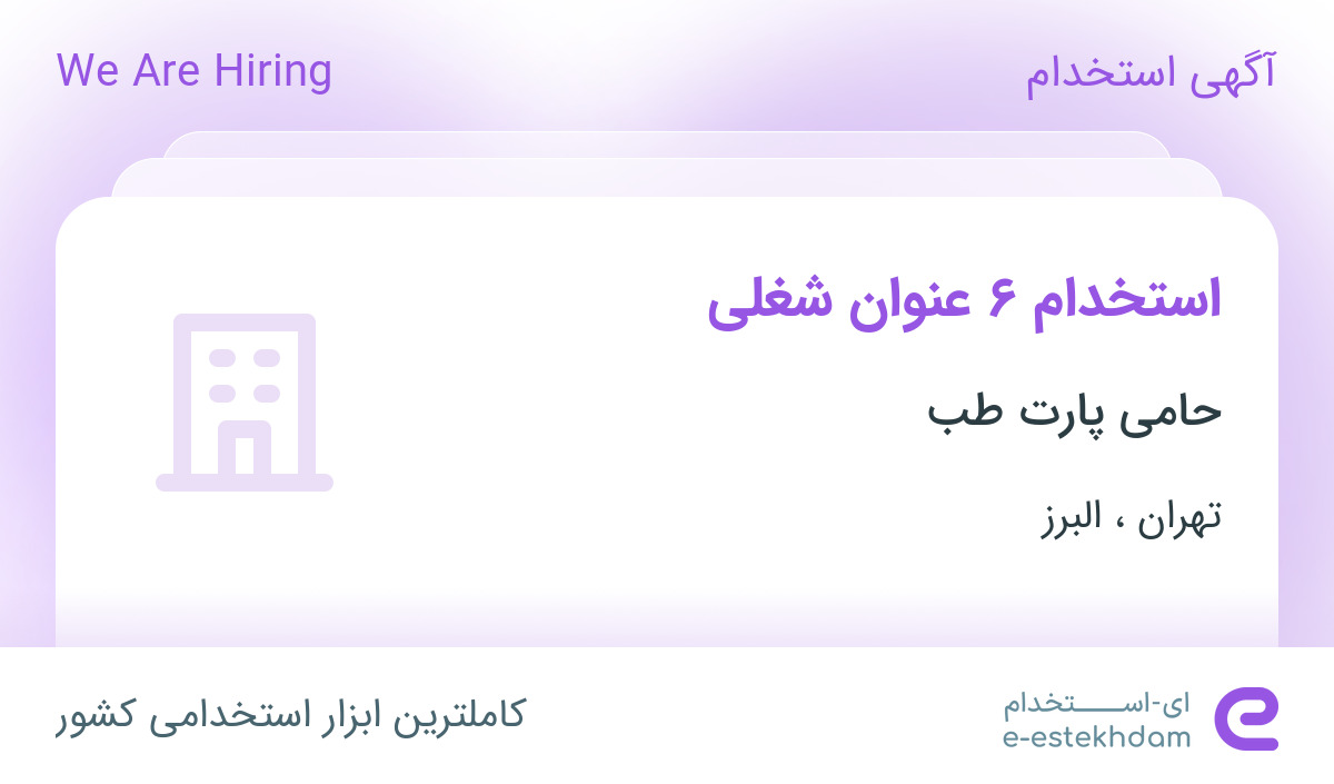 استخدام ۶ عنوان شغلی در حامی پارت طب از تهران و البرز جهت کار در گرمدره