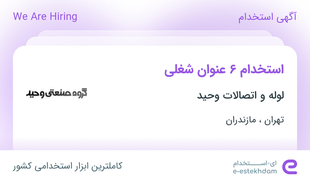 #استخدام #عنوان #شغلی #در #لوله #اتصالات #وحید #در #تهران #مازندران