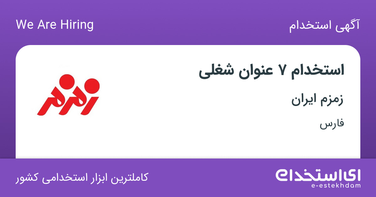 استخدام ۷ عنوان شغلی در زمزم ایران در فارس