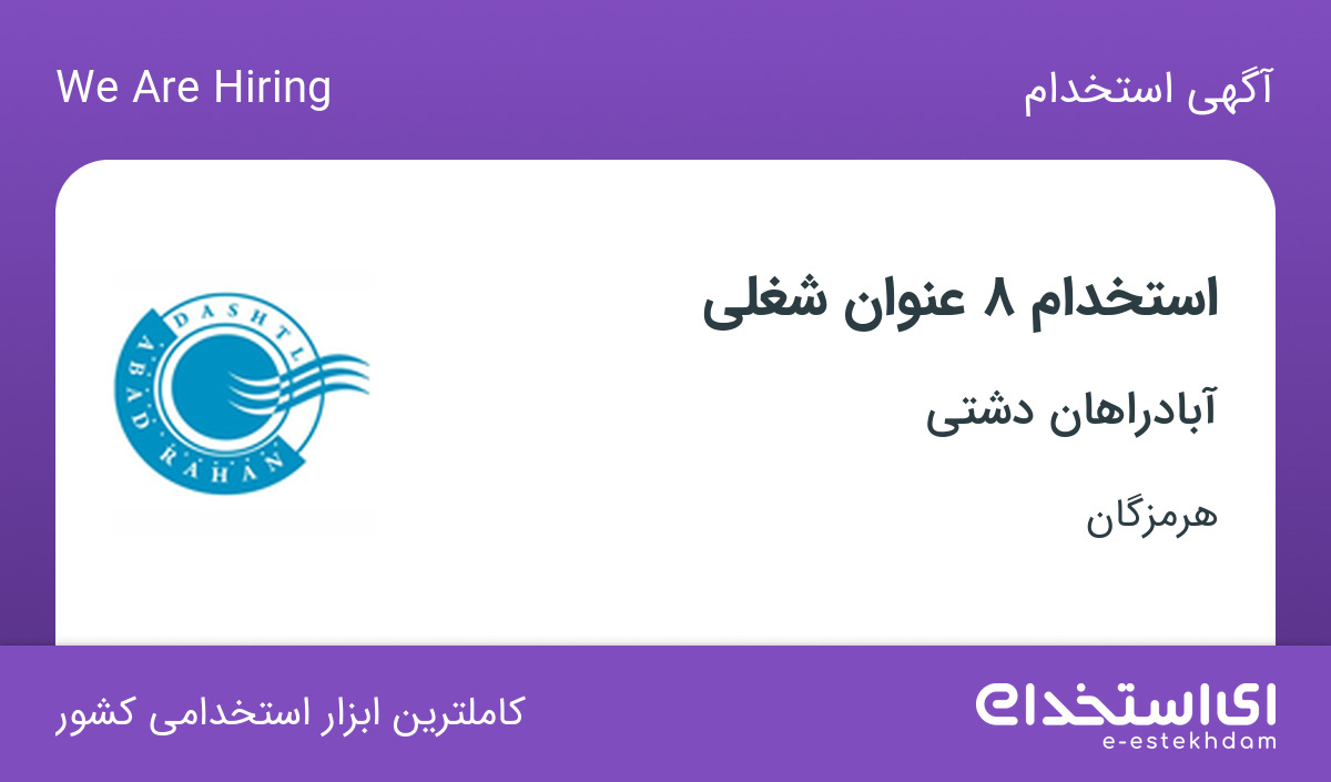 استخدام ۸ عنوان شغلی در آبادراهان دشتی در هرمزگان