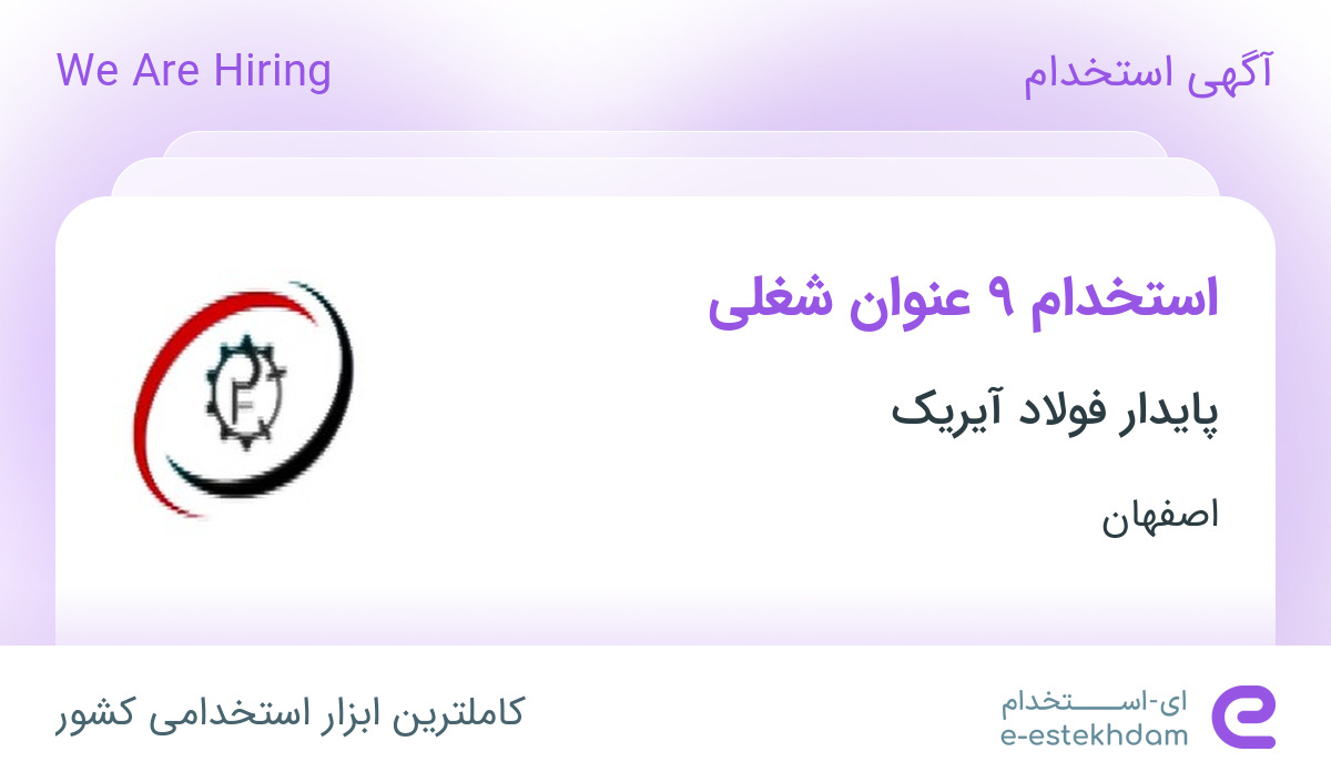 شرکت پایدار فولاد آیریک جهت تکمیل کادر خود در استان اصفهان از افراد واجد شرایط زیر دعوت به همکاری مینماید.